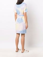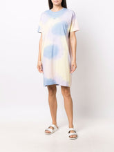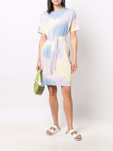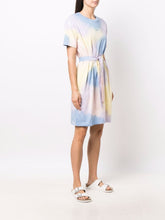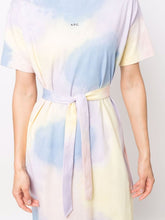 Multicolored tie and dye dress, made of organic cotton. Featuring a straight cut, short sleeves, round neck, tonal belt at the waist, apc logo at the chest.