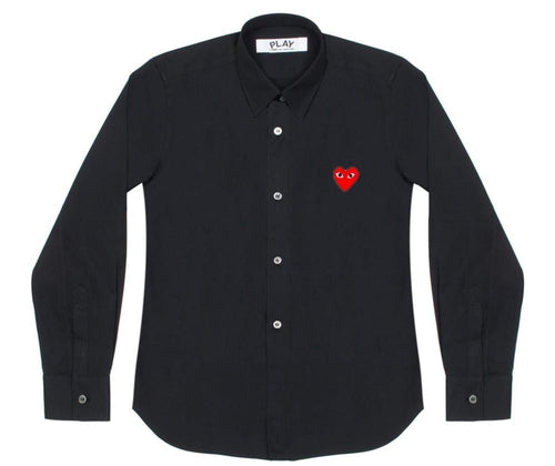 BLACK SHIRT WITH EMBROIDERED RED HEART