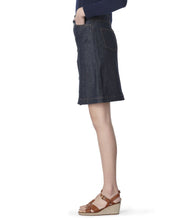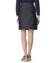 Unwashed Japanese denim. Selvedge denim. Straight, slightly flared cut. Button closure. Seven buttons. Inset waistband. Belt loops. Five pockets: two western pockets, fob pocket, two back patch pockets. Jean-style back yoke. Unlined. Wide topstitched hem. Contrasting caramel-coloured topstitching. Buttons engraved A.P.C. Above-knee length.